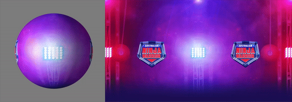 The motion graphics were designed for projection onto a hanging 5m orb.